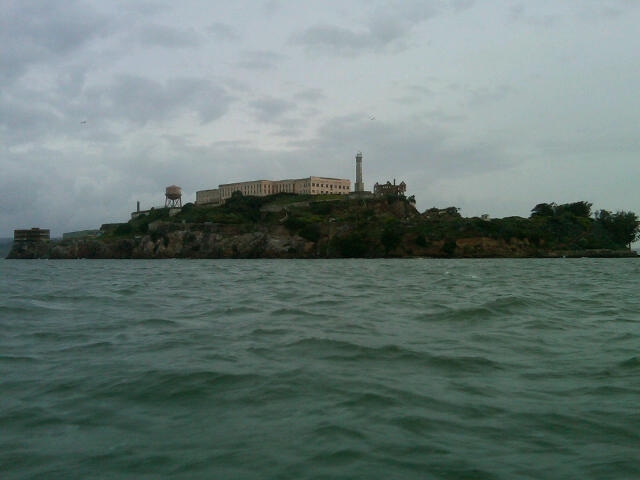 Suddenly I am snapped back, the boat is no longer smacking the water, the engine is quietly idling and I am back in San Francisco Bay, ” do you want to take a picture of Alcatraz” the pilot asks, ” sure do, this is my only chance to do the tourist sightseeing thing while I am here in San Francisco”, it was kind of him to stop, or maybe I had been making him nervous holding on with one hand and taking pictures with my phone with the other hand since we left the harbour. I got my shot, tucked my phone back in my pocket and then did a double take, ” someones dog is out here in the middle of the bay, a chocolate brown lab, how did it make it all the way out here we must be nearly a mile from shore?”. ” Hey see the seal lion”, someone shouted from the boat. Everything my brains knows told me it was a dog, when I looked a little closer I saw huge brown expressive eyes, whiskers and an over sized head, just hanging there in the water amongst all the waves checking us out with a ” come on in, the water’s fine!” look on it’s face……..GULP, guess I am not swimming alone today.