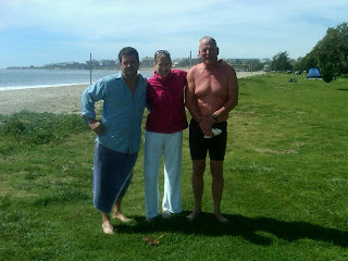 5:30am I bolt out of bed, I laid out all my gear last night……warm clothes to put over my suit to keep me warm in the boat, including a hat, fleece pants, turtle neck, down vest, ice breaker socks, a hot thermos of tea, a peanut butter sandwich and Lara Bar. Also a plastic bag of warm dry clothes to change into after the swim.