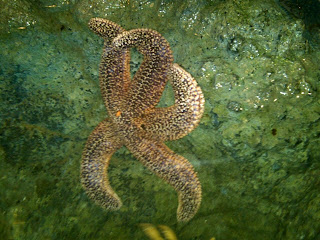 This wee guy is like a starfish with all his 5 legs curled up under his body, he has little spines all over his body that look like pine needles, tough to see he blends into the rock he is hanging out on.